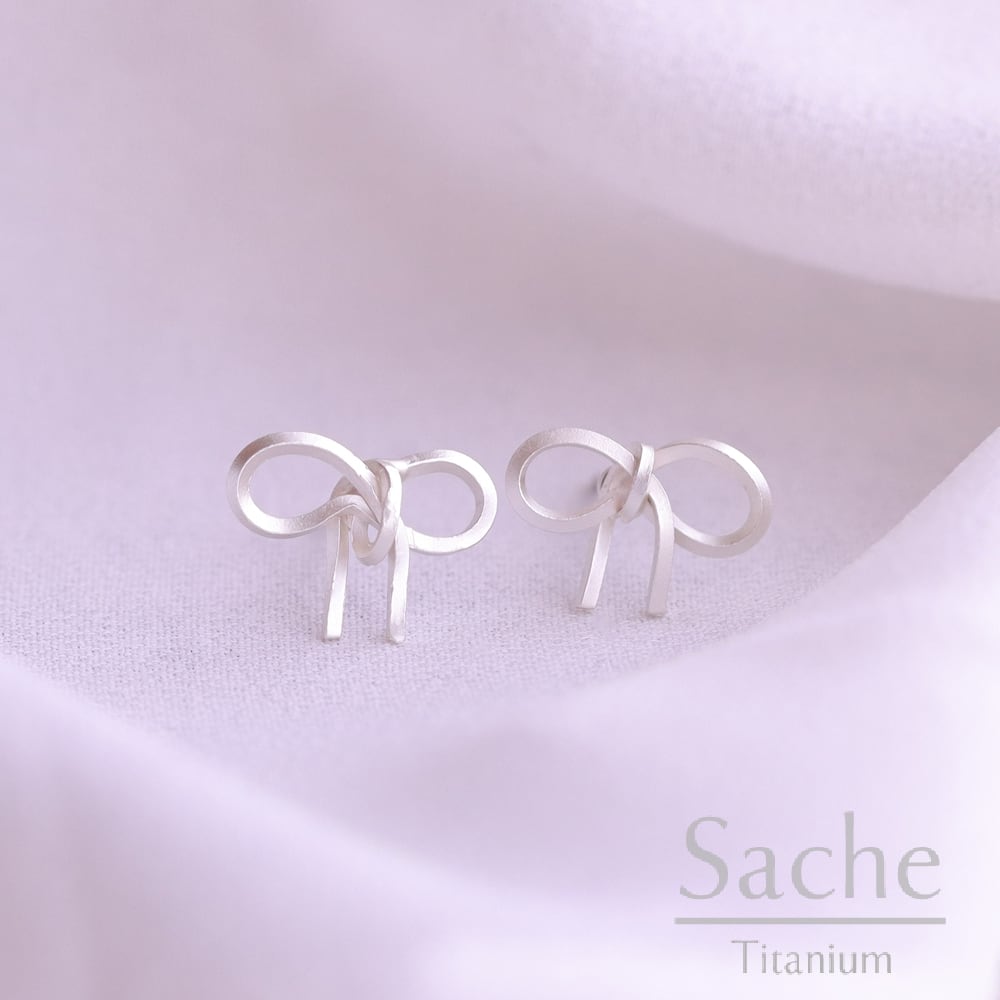 純チタン ピアス 金属アレルギー リボン 手結び マットシルバー サシェ sache 敏感肌用/商品名:【純チタンピアス】cinta