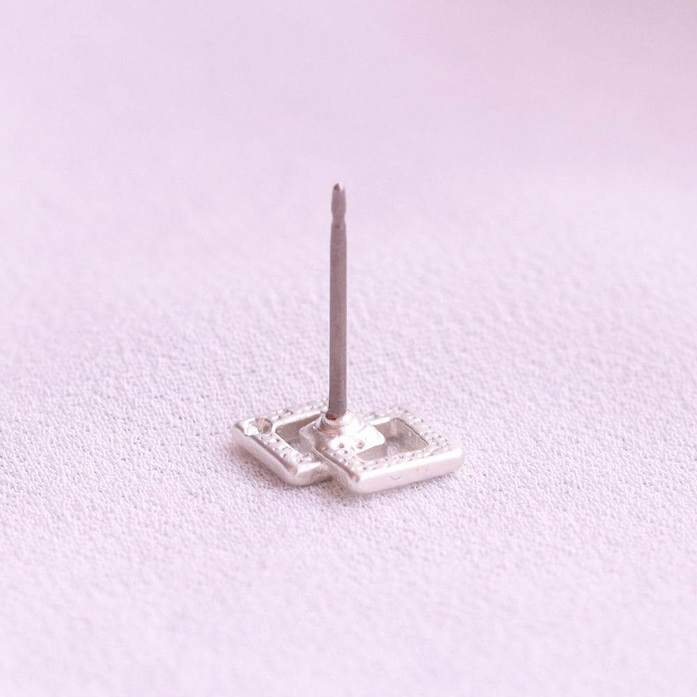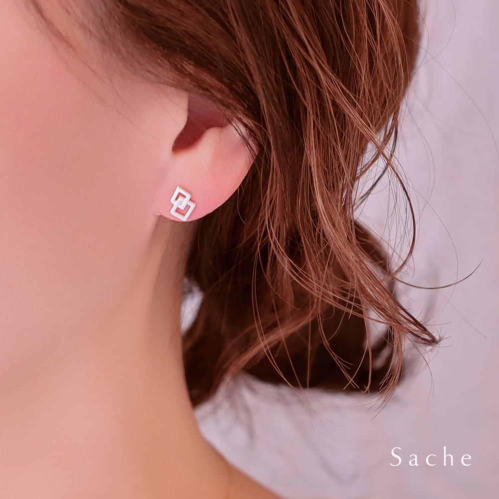 純チタン ピアス 金属アレルギー スクエア 幾何学模様 小さ目 マットシルバー サシェ sache 敏感肌用/商品名:【純チタンピアス】Delia