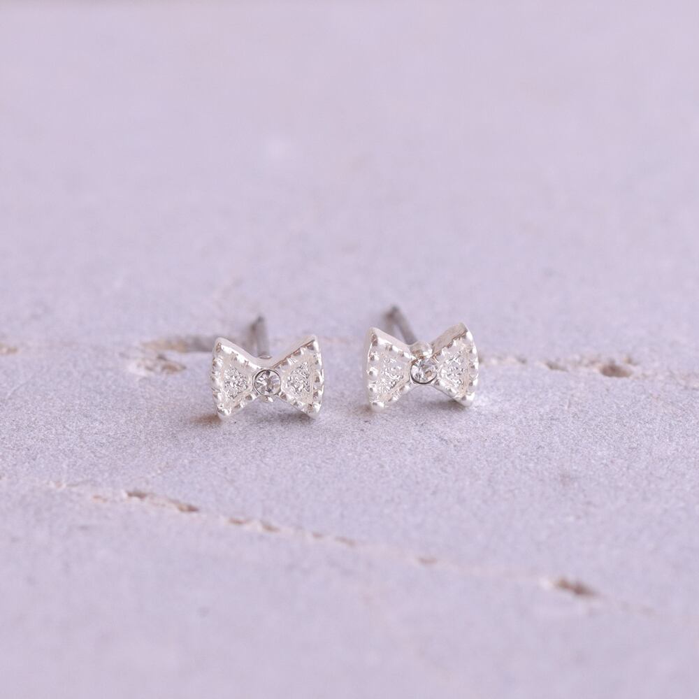 甘くなりがちなリボンモチーフを、落ち着いた質感のシルバーと繊細なきらめきで大人の装いにも合わせやすくデザインしています。