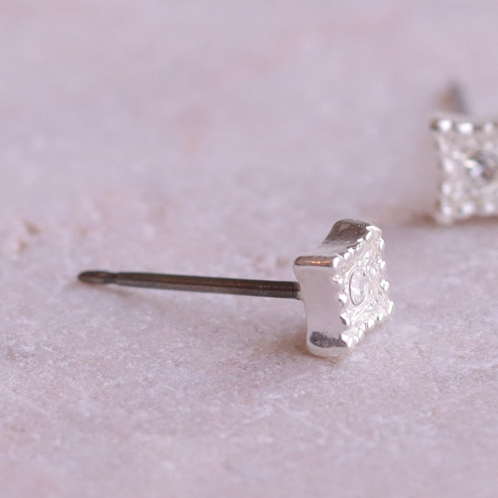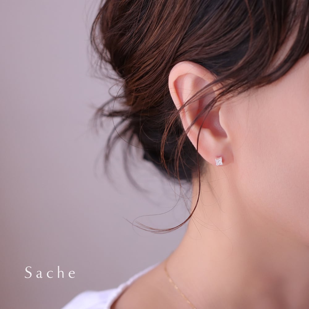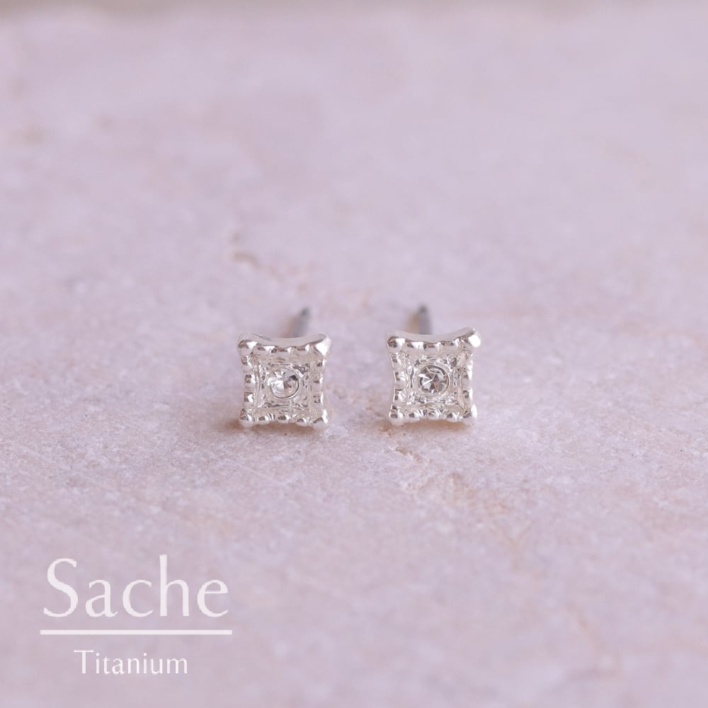 純チタン ピアス 金属アレルギー 四角 スクエア シンプル 一粒石 マットシルバー サシェ sache 超敏感肌用/商品名:【純チタンピアス】Kiia