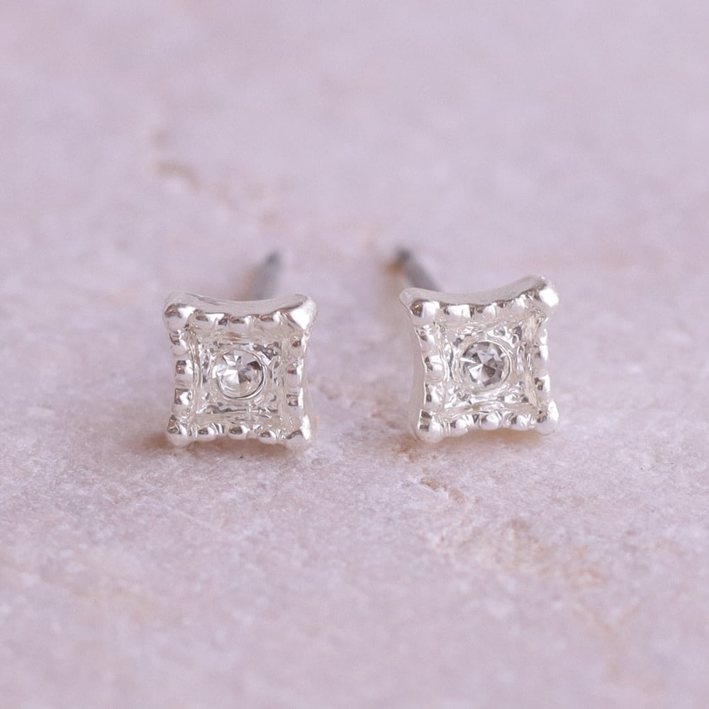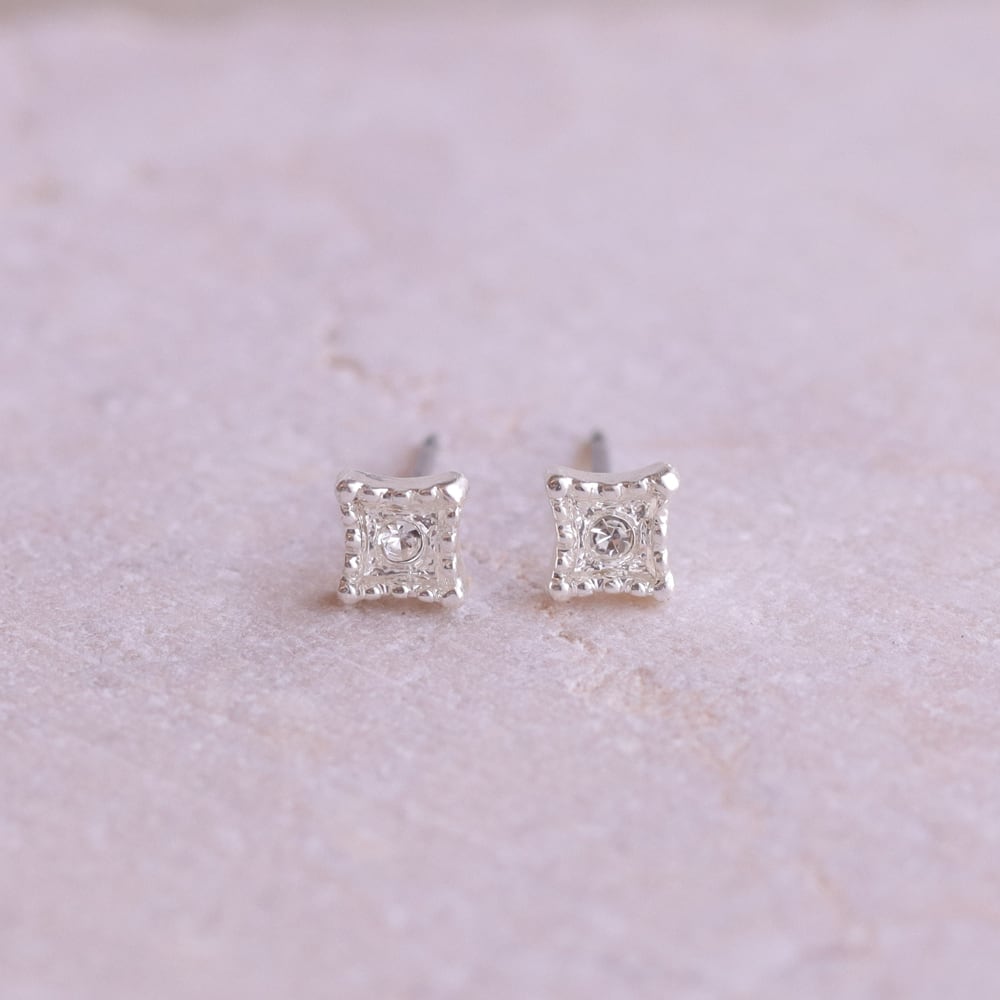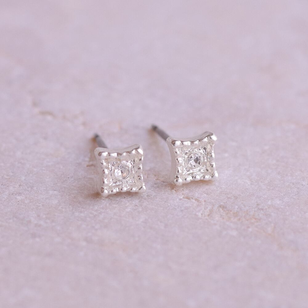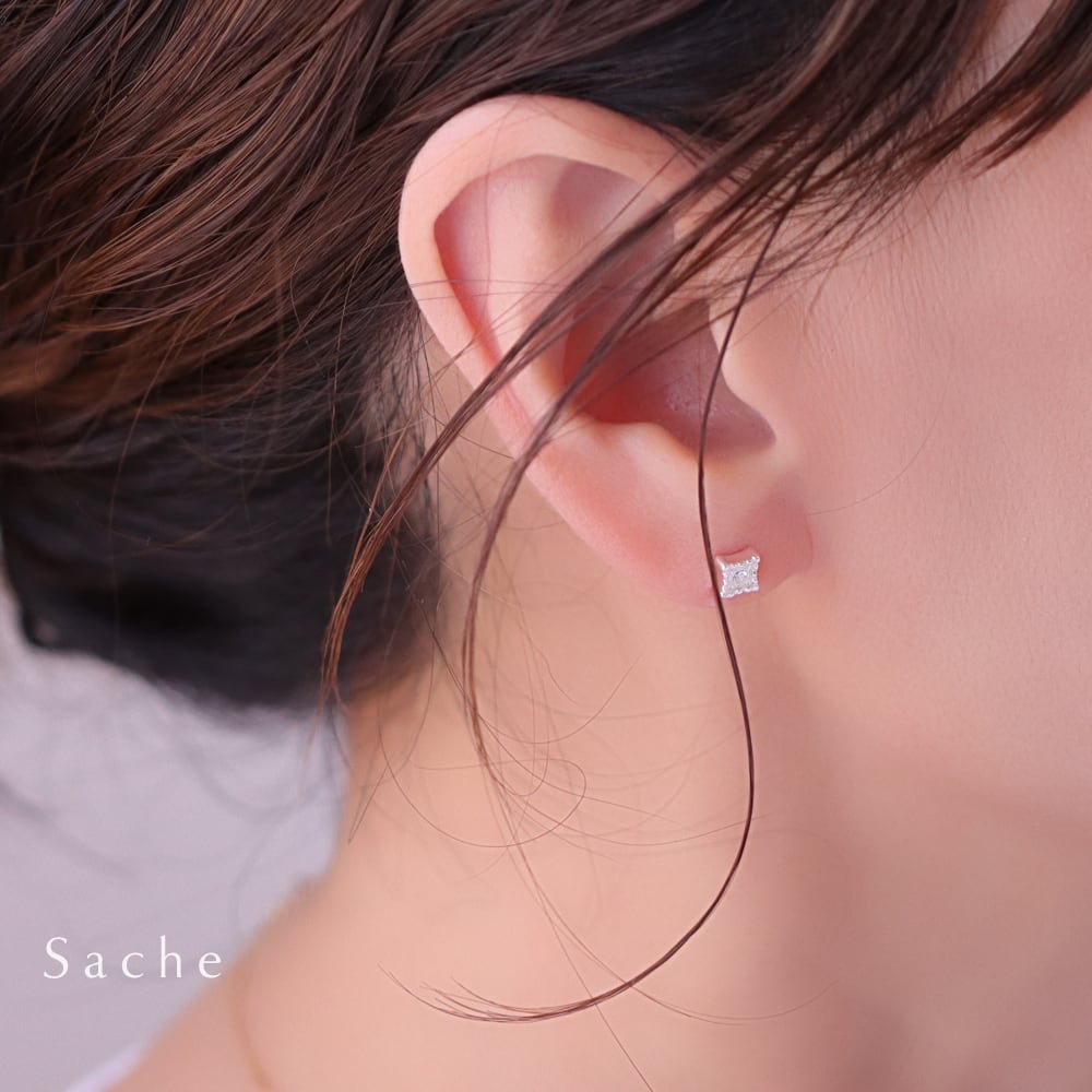 シンプルなスクエアデザインに星屑のような輝きを添え、上品で華やかな耳元を演出します。