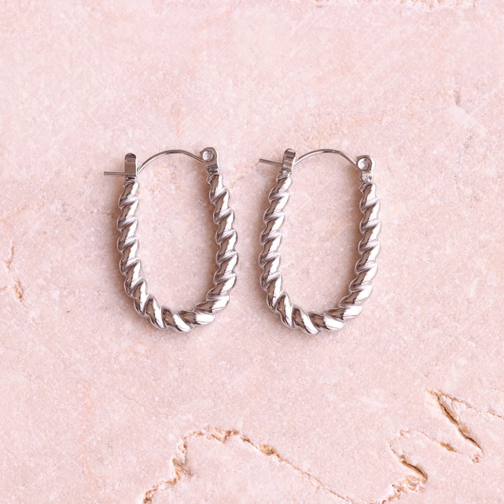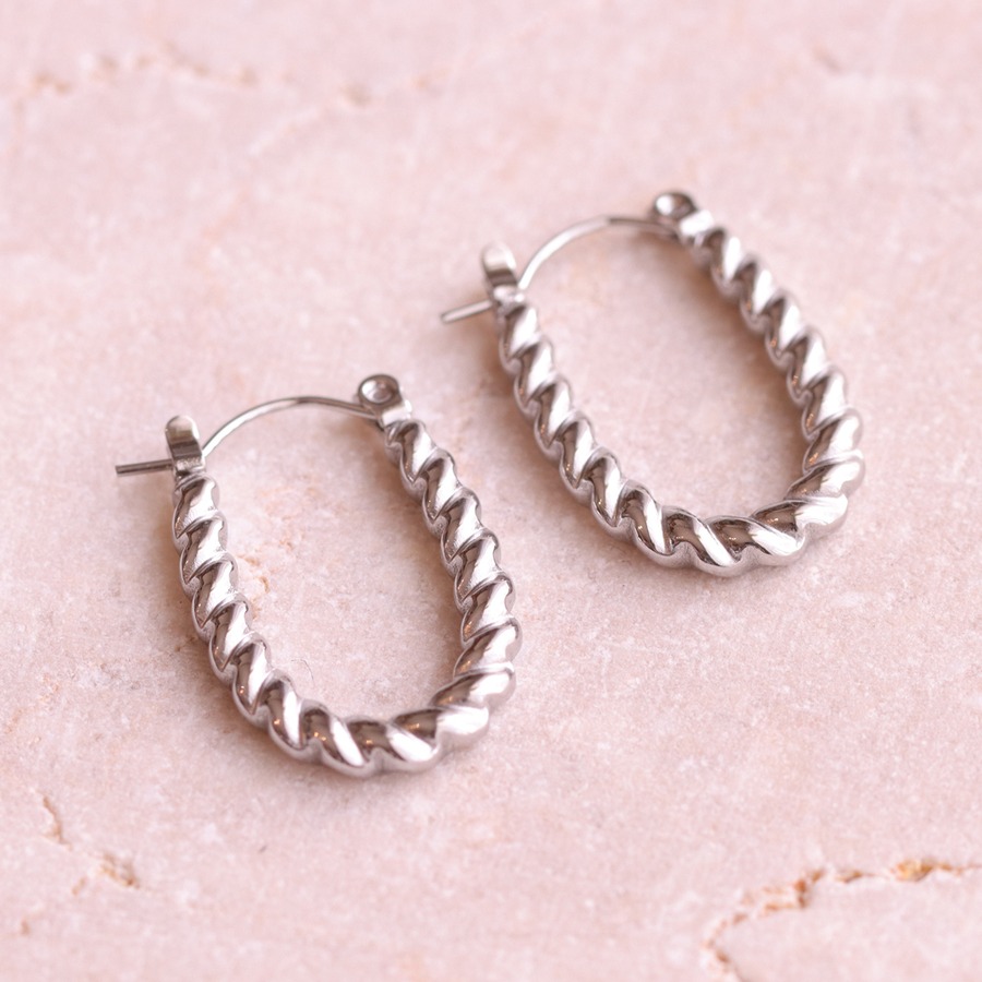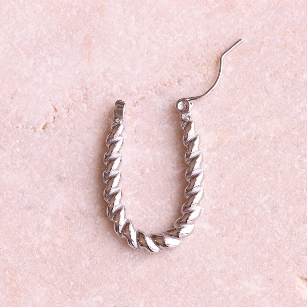 シンプルなフープにひねりを効かせ、さりげなく動きのあるデザインに。シンプルだけど他と差がつく、おしゃれなワンポイントになります。