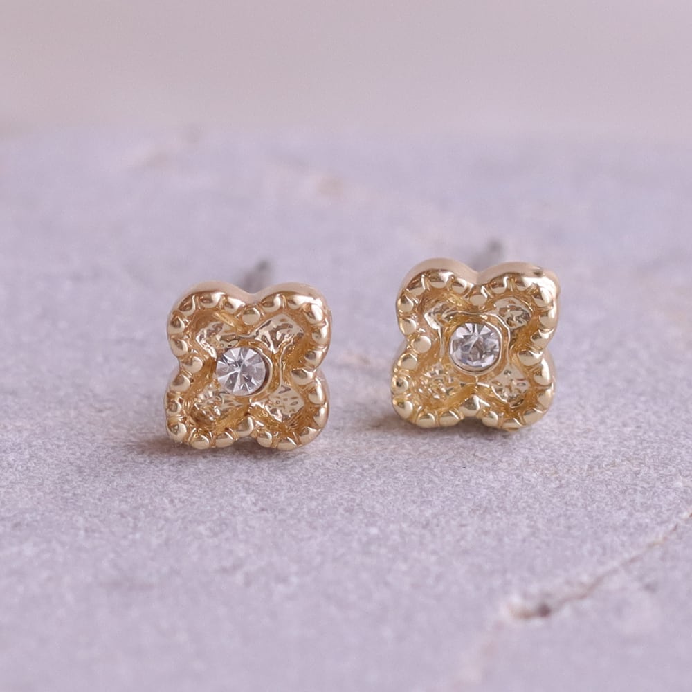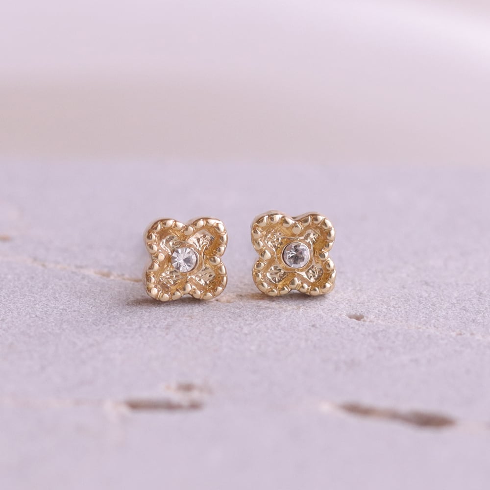 純チタン ピアス 金属アレルギー フラワー フェミニン 一粒石 マットゴールド サシェ sache 超敏感肌用/商品名:【純チタンピアス】Kukka