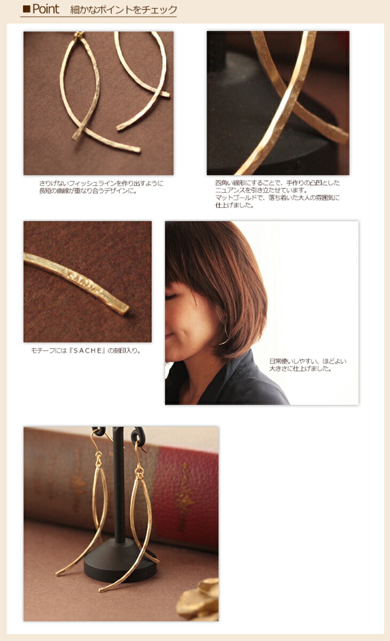 そんなハッピーモチーフからヒントを得て、重なり合うラインのピアスをデザインしました。