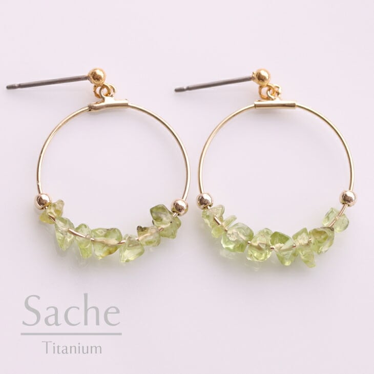 【金属アレルギー対応】純チタン ピュアチタン /商品名:【純チタンピアス】天然石のサザレフープ(ペリドット)