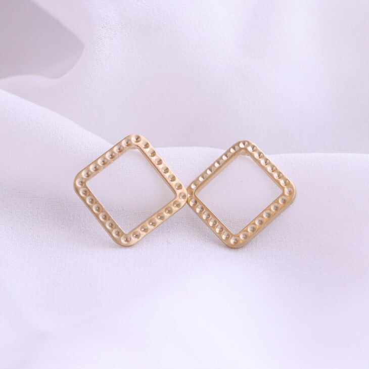 ピアス 金属アレルギー 純チタン マットゴールド スクエア 四角 フレーム 額縁 /商品名:【純チタンピアス】Alice