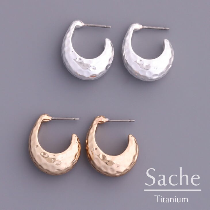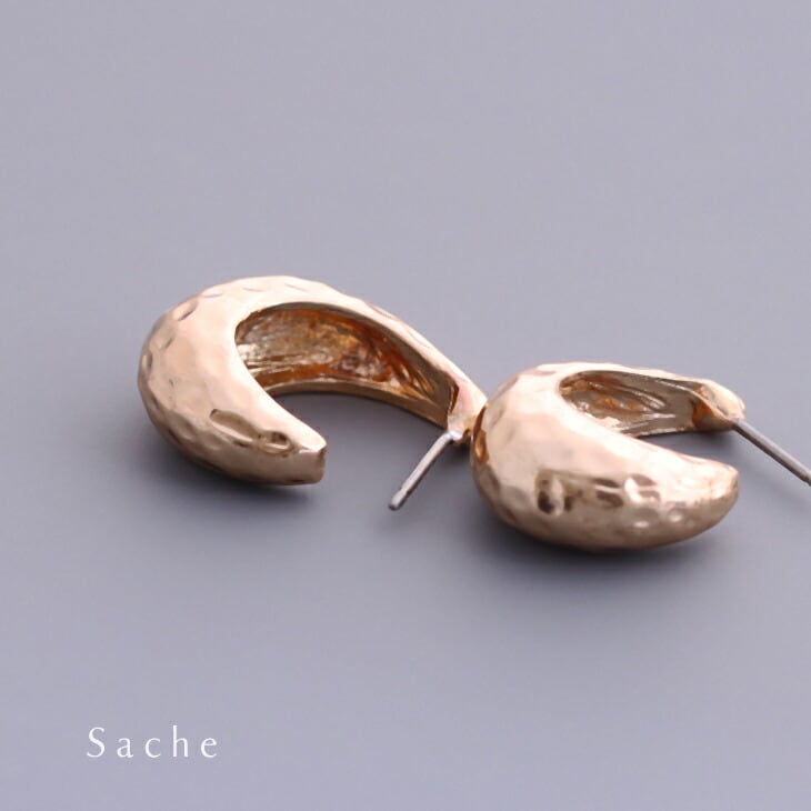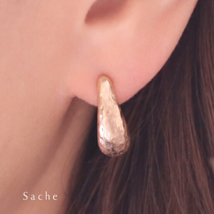 コロンとしたフープ状のドロップに凸凹と槌目を付けたピアス『SVEA(スヴェア)』。