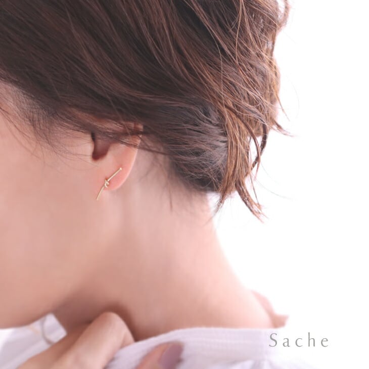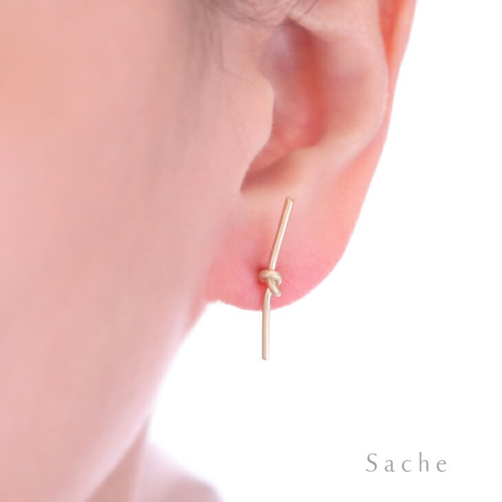 金属アレルギー対応 ピアス 純チタン ノット マットゴールド 紐 和風 /商品名:【純チタンピアス】YUWAE